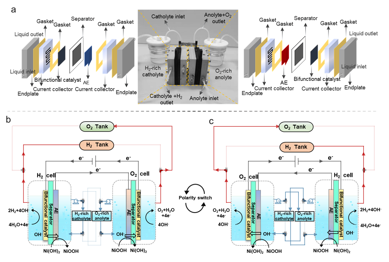 电化学分解水制氢是最可持续的制氢方法之一。由于传统碱性电解池和新兴质子交换膜电解池受到结构与材料的固有限制,存在材料及运行成本高的问题。