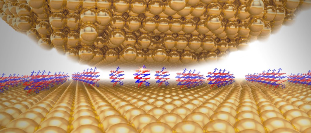 研究者们巧妙地利用了一种尺寸在1纳米左右的芳香族低聚酰胺折叠体分子,将其作为介质单分子层放置于金颗粒和金薄膜之间(图1)。通过调节溶剂和温度, 可以调控折叠体的超分子组装构型,进而对等离激元谐振进行调制 (2A)