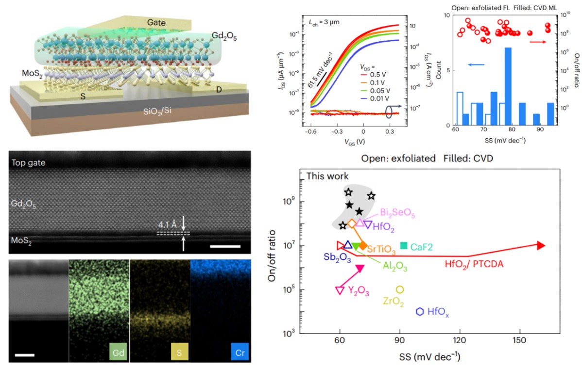 近日,《自然·材料》(Nature Materials)在线发表了物理科学与技术学院何军教授课题组在后摩尔时代先进技术节点器件高κ单晶栅介质方面的最新进展,文章题目为:“High-κ monocrystalline dielectrics for low-power two-dimensional electronics”。开云链接官网(中国)有限公司-官网尹蕾研究员、程瑞清副教授和电气与自动化学院万旭昊博士为论文共同第一作者,何军教授和郭宇铮教授为通讯作者,开云链接官网(中国)有限公司-官网为第一署名单位。