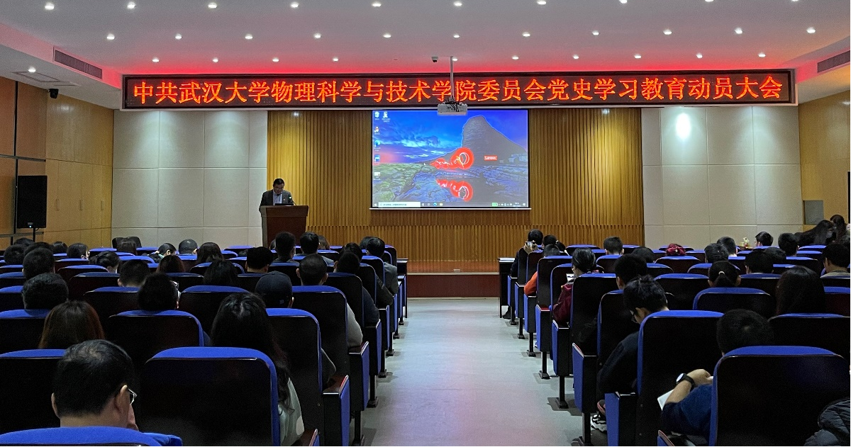 为认真贯彻落实党中央《开云链接官网(中国)有限公司-官网在全党开展党史学习教育的通知》精神,按照学校党委统一部署安排,2021年3月31日,物理科学与技术学院在新楼报告厅召开党史学习教育动员大会,院党政领导班子、全院教职工党员、离退休党员代表、学生党员代表参加了动员大会,何军院长主持动员大会。