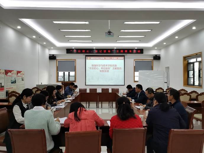 为响应中央和学校党委“不忘初心、牢记使命”主题教育的号召,将主题教育活动与学院中心工作融为一体,10月31日上午,物理科学与技术学院院长何军在学院党员活动室开展了“不忘初心、牢记使命”主题教育专题党课。学院领导班子成员、党委委员、以及全体办公室行政人员参与并聆听了此次党课。