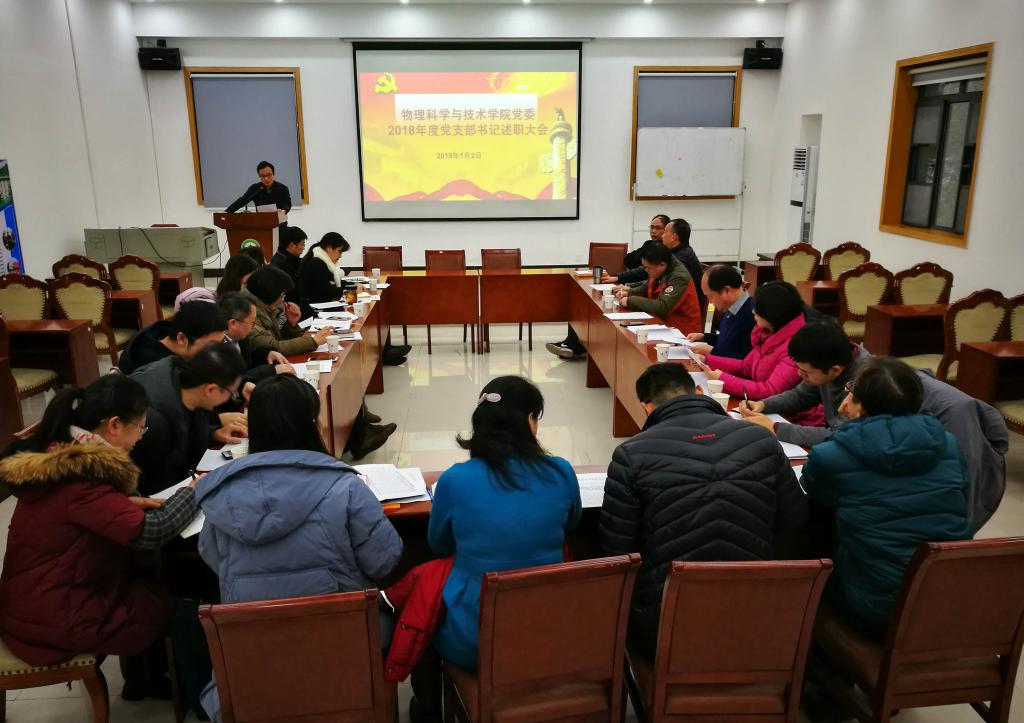 党的基层组织是党的全部工作和战斗力的基础,2018年以来,物理科学与技术学院党委坚持抓实基层党支部建设,积极贯彻落实新时代党的组织路线,把党支部建设摆在突出的位置,不断加强党支部规范化建设。根据学校党委的通知要求,1月2日下午学院开展2018年度教师党支部书记述职评议考核工作。学院党委班子成员、支部委员、党员代表等听取述职并进行现场测评。