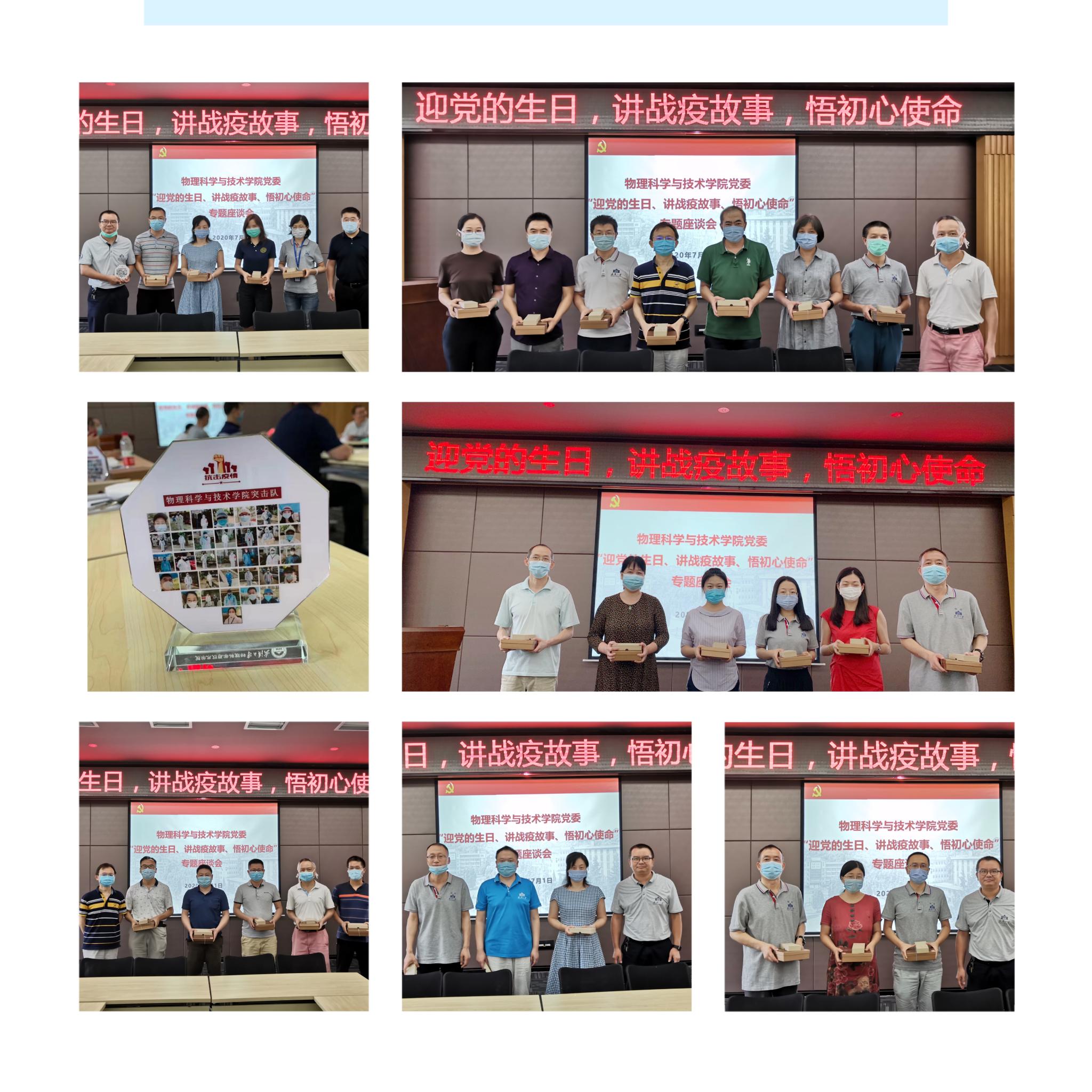 今天是中国共产党99岁的生日,在这个特殊的历史时刻,学院党委召开“迎党的生日、讲战疫故事、悟初心使命”专题座谈会,学院抗疫突击队全体成员齐聚一堂,分享战“疫”故事和心得体会,党委书记王建波主持会议,学院党委委员、突击队成员以及捐赠代表参加座谈会。