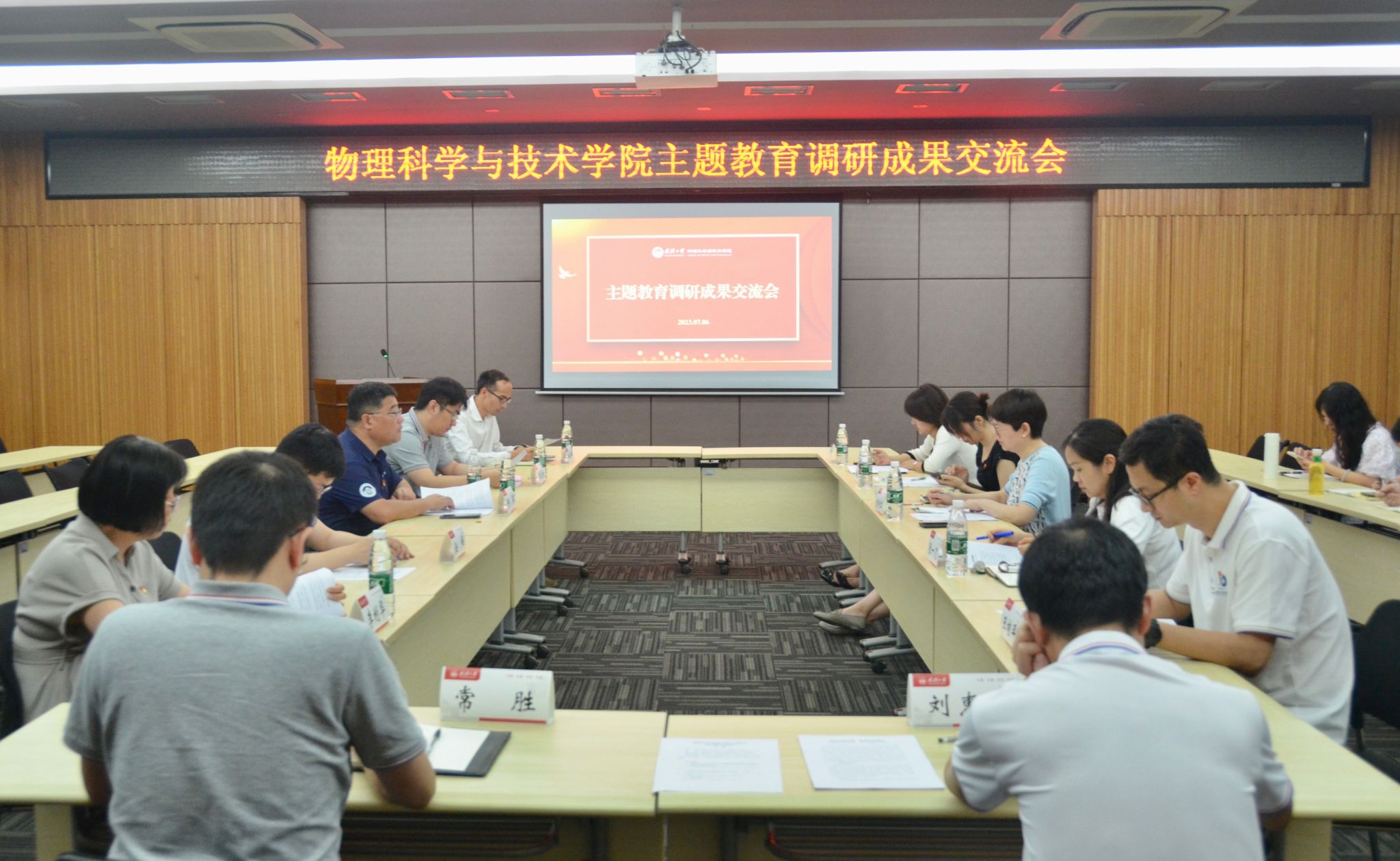 物理科学与技术学院持续深入推进主题教育各项工作,7月6日下午,学院在D505多功能厅召开主题教育调研成果交流会,四个调研组分别汇报了调研情况,党委副书记张一飞讲专题党课。学校第二巡回指导组副组长赵妍、学院党委书记余向红、院长何军及全体班子成员、教师党支部代表、办公室党支部全体成员参加,会议由余向红主持。