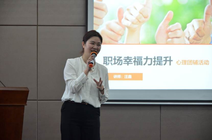 本次讲座邀请到了国家二级心理咨询师,北京易普斯咨询有限责任公司资深培训师汪鑫老师跟大家分享心理健康方面的知识,她的报告主题是“挑一挑心灵的弦,提升幸福感知力”。