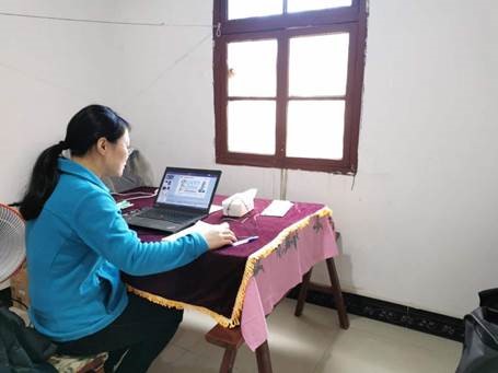 学院物理系党支部纪检委员郝中华副教授,是一名一线授课老师,为了实现“停课不停教”,被疫情阻隔在老家农村她,一块木板和两个长凳就是临时办公桌,从邻居家要到WIFI密码,“蹭网”授课与学生相聚云端。作为纪检员的徐知老师,也在幕后辛苦着,一方面协助做好突击队的疫情防控工作,确保各项防控措施落到实处,一方面还要兼顾学院的线上课程,确保学院教学工作顺利开展。