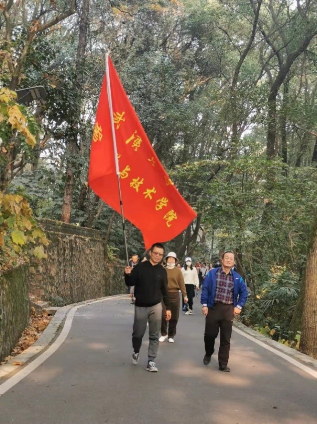 初冬时节的珞珈山畔,银杏翻黄,层林尽染,正是一树黄金一树诗的好时节,参与此次活动的七十多名教职工们,沿环山公路,绕行珞珈山,置身在清幽静雅的珞珈山中,才闻书香,又览风光。教工们平时教研工作压力大,徒步活动使大家有机会走进珞珈山,一路上大家闲庭信步、交流融洽,队伍中时不时传出欢声笑语,既放松了心情又锻炼了身体,“每天锻炼一小时,健康生活一辈子”生活理念也更加深入人心。