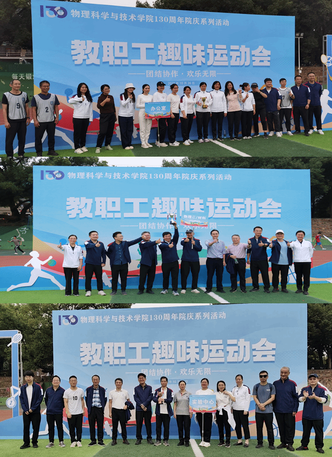 秋高气爽,银杏又黄。10月26日下午,物理科学与技术学院130周年院庆系列活动—2023年教职工趣味运动会在桂园操场隆重举办,学院80多名教职工参与其中,享受了一场难忘的运动盛宴。