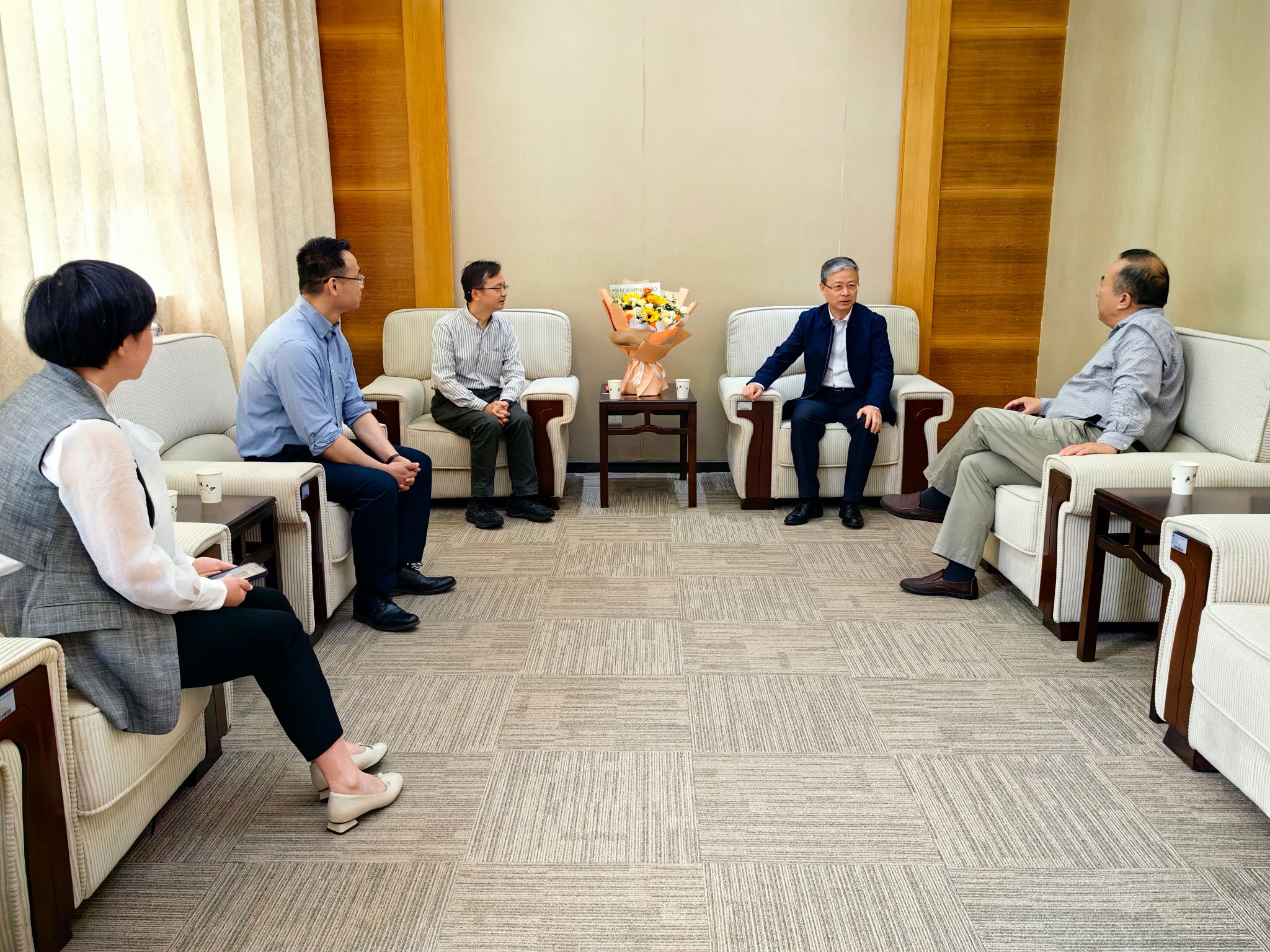 2024年4月25日上午,在五一国际劳动节来临之际,武汉大学党委书记黄泰岩同志与工会主席吴爱军、副主席黄丽及相关工作人员,走访我院慰问2023年湖北省劳动模范刘正猷教授。
