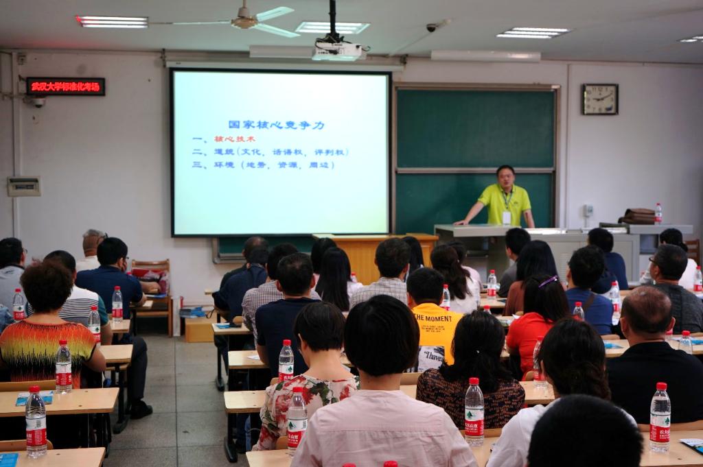 接下来,黄启俊教授向家长们介绍武汉大学的本科生教育和招生相关政策。黄启俊教授首先从武汉大学的办学历程谈起,介绍了学校学科体系、学科排名、国际交流、师资力量、校园环境等方面的基本情况。他还从教授亲自为本科生授课、业余科研训练、班级导师制度、教师队伍建设、通识大类教育、转专业、第三学期课程、学生学科竞赛、毕业生流向等多个方面,全面介绍武大本科生教育理念与培养质量。对于家长比较关心的招生类别、自主招生、高考录取等,黄启俊教授做了比较详细的政策解读,并热情欢迎各位家长和指导老师组织学生来武大游学参观。