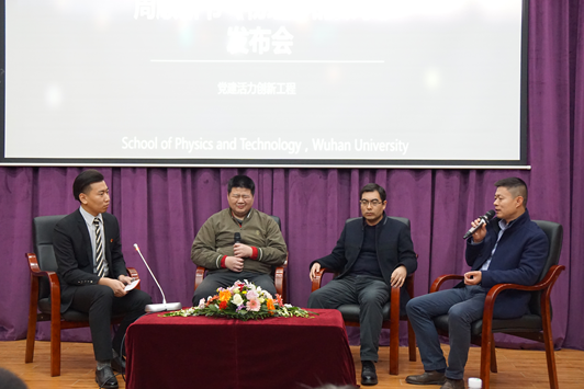 在今天的访谈中,周顺老师对在这本书的出版发行中起到重要作用的武汉大学宣传部副部长田贵华、武汉大学出版社文理分社社长王金龙表达了感谢,田贵华老师也指出,出版这本书的过程是一个弘扬正能量的过程,也是一个有意义的过程,而周顺老师的学习则是一种“纯粹的学习”,不掺杂任何的功利。而说到学习方法时,周顺老师说对待学习中的困难要反复读,并且巧妙地将物理比作了苹果,并坦言学习物理能够自己感受到物理的“甜味”、“香味”。最后,武汉大学出版社文理分社社长王金龙向同学们浅谈了出版的过程,这本书的出版周期长于其他的书,而出版社有职责把事情做得圆满而慎重。