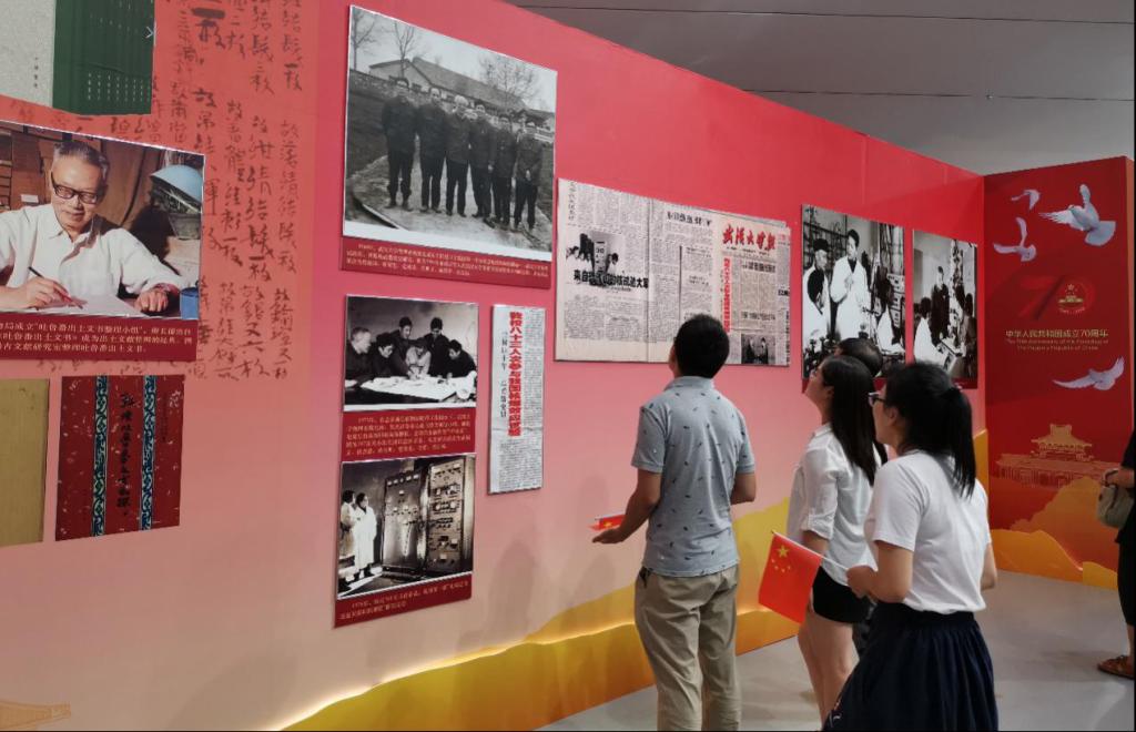 2019年9月30日上午,教学实验中心支部开展了“我们都是追梦人”党员主题教育活动,支部全体党员在支部书记柯满竹老师的带领下,参观了为庆祝中华人民共和国成立70周年举办的“壮丽七十年,奋进武大人”图片展。