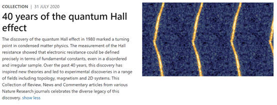 1980年,量子霍尔效应的发现对此后凝聚态物理学的发展产生了深远影响。在过去40年中,这一发现激发了无数新的理论和实验成果。为纪念量子霍尔效应40周年,Nature对旗下期刊发表的相关综述、新闻稿和评论文章进行选录,制作合集。该选集收录了我院肖孟教授参与的两篇综述文章:Topological phases in acoustic and mechanical systems(《声波和弹性波中的拓扑相》)与Topological sound(《拓扑声学》)。