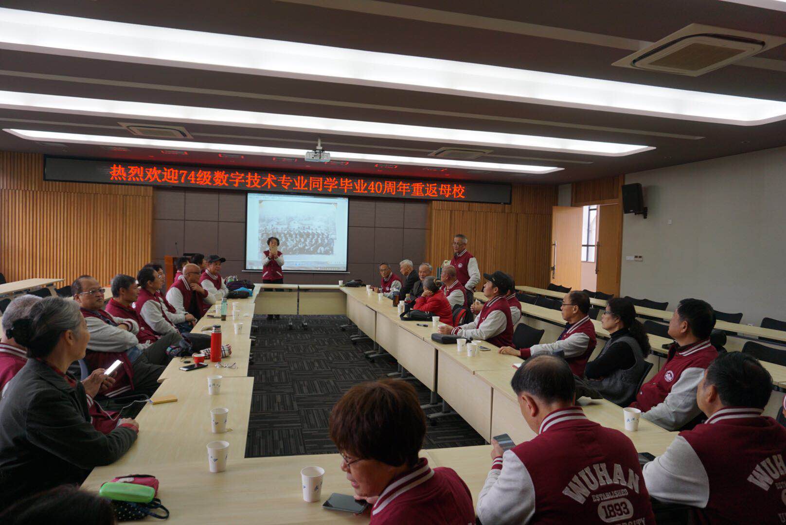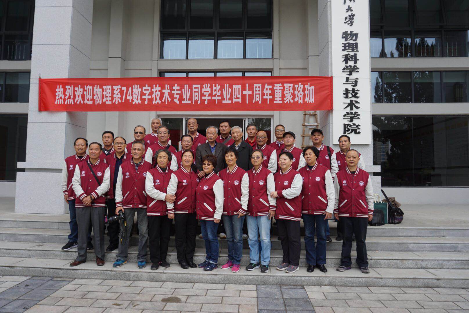 金秋十月,丹桂飘香,物理学院又迎来了74级数字技术专业的校友们,10月19日上午,他们身着统一定制的文化衫,相约来到物理学院新楼五楼多功能厅,在这里欢聚一堂,追忆过往,共叙同窗情。