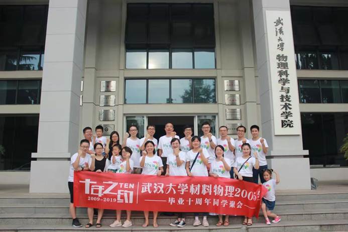2019年7月6日,开云链接官网(中国)有限公司-官网2005级材料物理专业的16位校友,带着对美丽母校的深深思念,带着对昔日师友的深厚情谊,从全国各地迫不可待地赶来,在离校十年之后重新回珈欢聚。