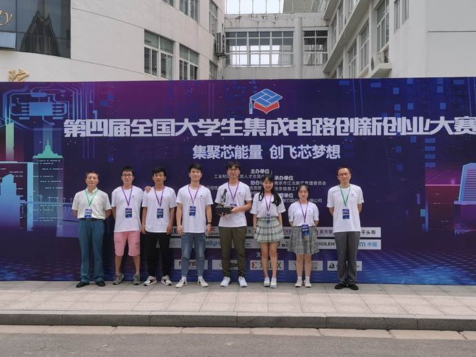 2020年8月21日至23日,第四届全国大学生集成电路创新创业大赛全国总决赛在南京举行,全国共有逾220家高校的超过2000支队伍报名参赛,经过分区复赛选拔,最终87所高校的289支队伍进入全国总决赛,其中我院1支本科生队伍、1支研究生队伍在全国决赛上分别获得三等奖、二等奖。