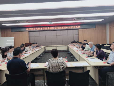 6月23日下午,物理科学与技术学院在新楼五楼多功能厅召开党员干部下基层察民情解民忧暖民心实践活动意见征求会。党委书记余向红主持会议,通报了第一批实践活动任务清单并再次征求相关意见,为下一步开展具体任务、落实任务清单内容、推动实践活动提质增效做好充分准备。参加本次会议的有学院领导班子成员、各系、中心主任和副主任以及各教师党支部的支部委员。