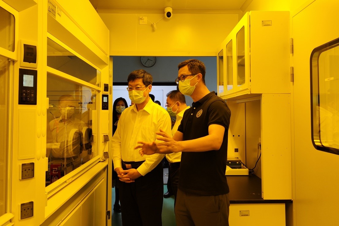 康涛参观了学院微纳加工实验室、新型半导体信息器件及芯片实验室和光电超净实验室,并就新一代光伏技术钙钛矿太阳能电池的研究进展和产业化进程、新型二维材料在光电子器件中的前沿应用、芯片集成领域的先进制造工艺与设备等内容,与实验室研究人员进行了交流。