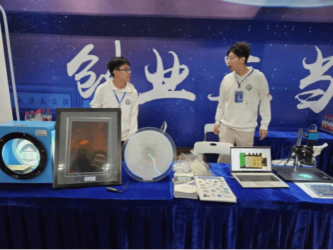 走进创新创业区,学院展台上的芯片设计成果和物理演示实验成功的吸引大批中学生。大家在聆听讲解的同时,还可以动手操作偏振光干涉、闪电盘、全息照片等。学生们广泛了解和亲身感受了物理科学的魅力,进一步激发了他们学物理、爱物理的兴趣和热情。