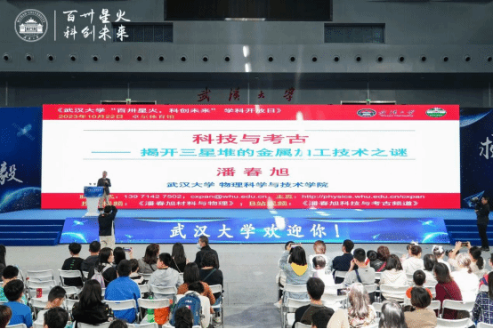 整点报告环节,刚刚荣获“湖北省十大科普达人”的潘春旭教授带领大家领略了科技与考古的魅力,为大家讲解如何利用现代科技去揭开历史上的“未解之谜”。