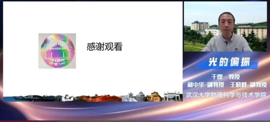 主讲人于霆老师承担物理专业全英文课程《optics》的讲授工作,郝中华老师讲授物理专业《光学》、公共基础课《大学物理》和《大学物理实验》、通识课《自然科学导引》等课程,王晓峰老师讲授《大学物理》和《大学物理实验》、通识课《物理演示实验》等课程。课件PPT的优化方面,还得到了《光学》课程组张顺平教授的建议和帮助。科普视频的录制得到了湖北省物理学会和开云链接官网(中国)有限公司-官网的大力支持。