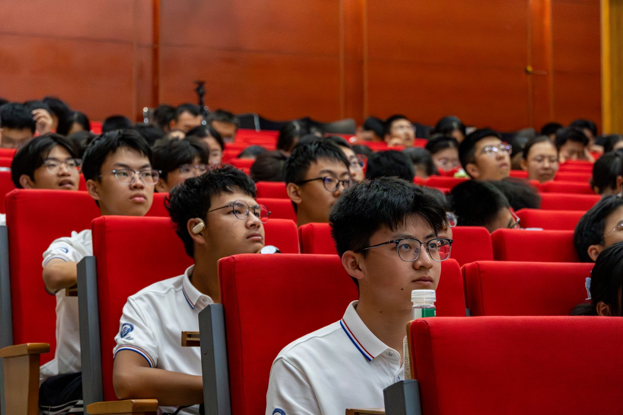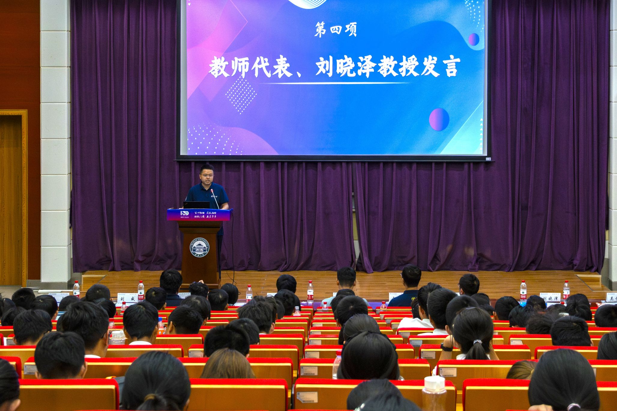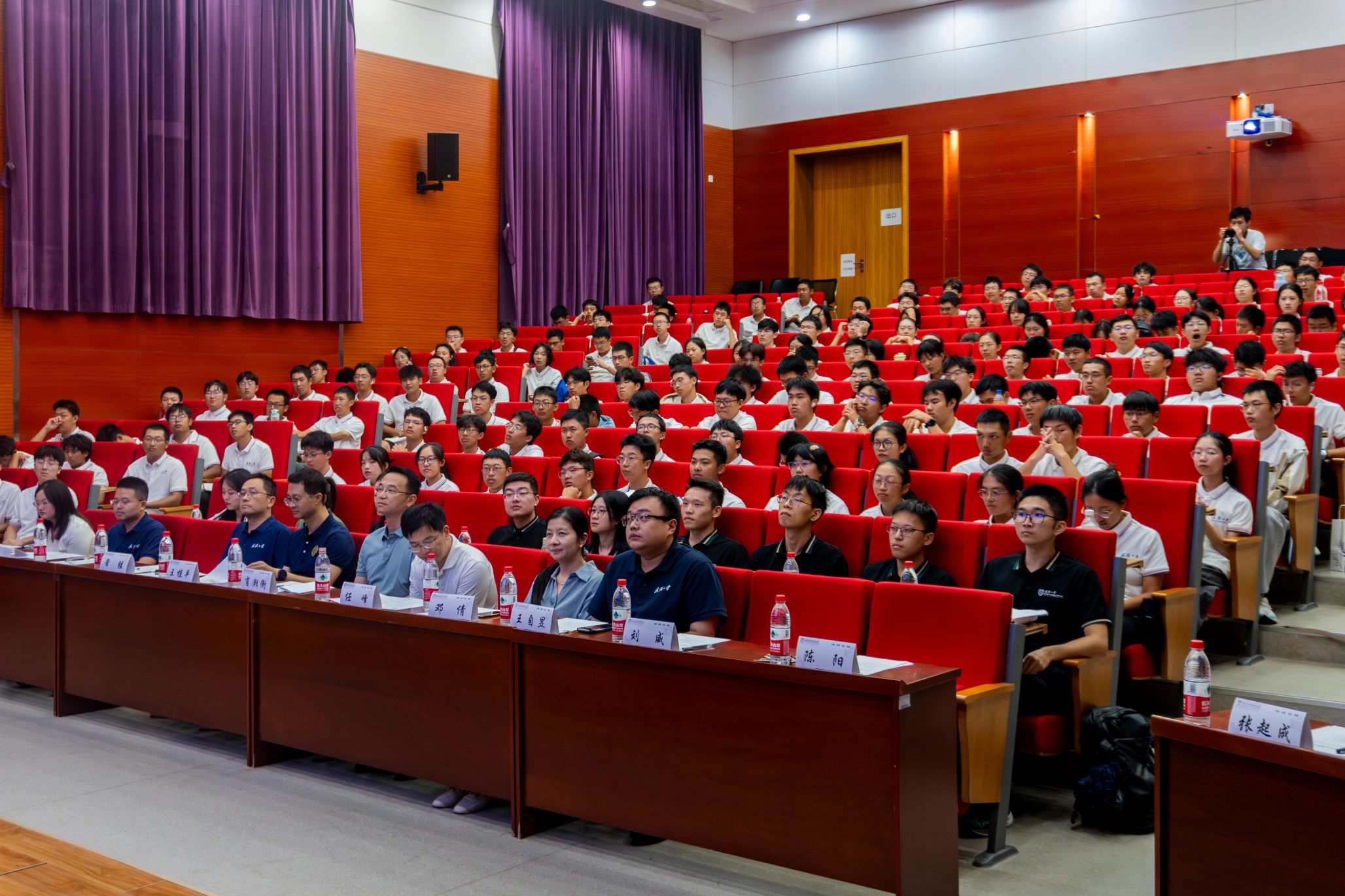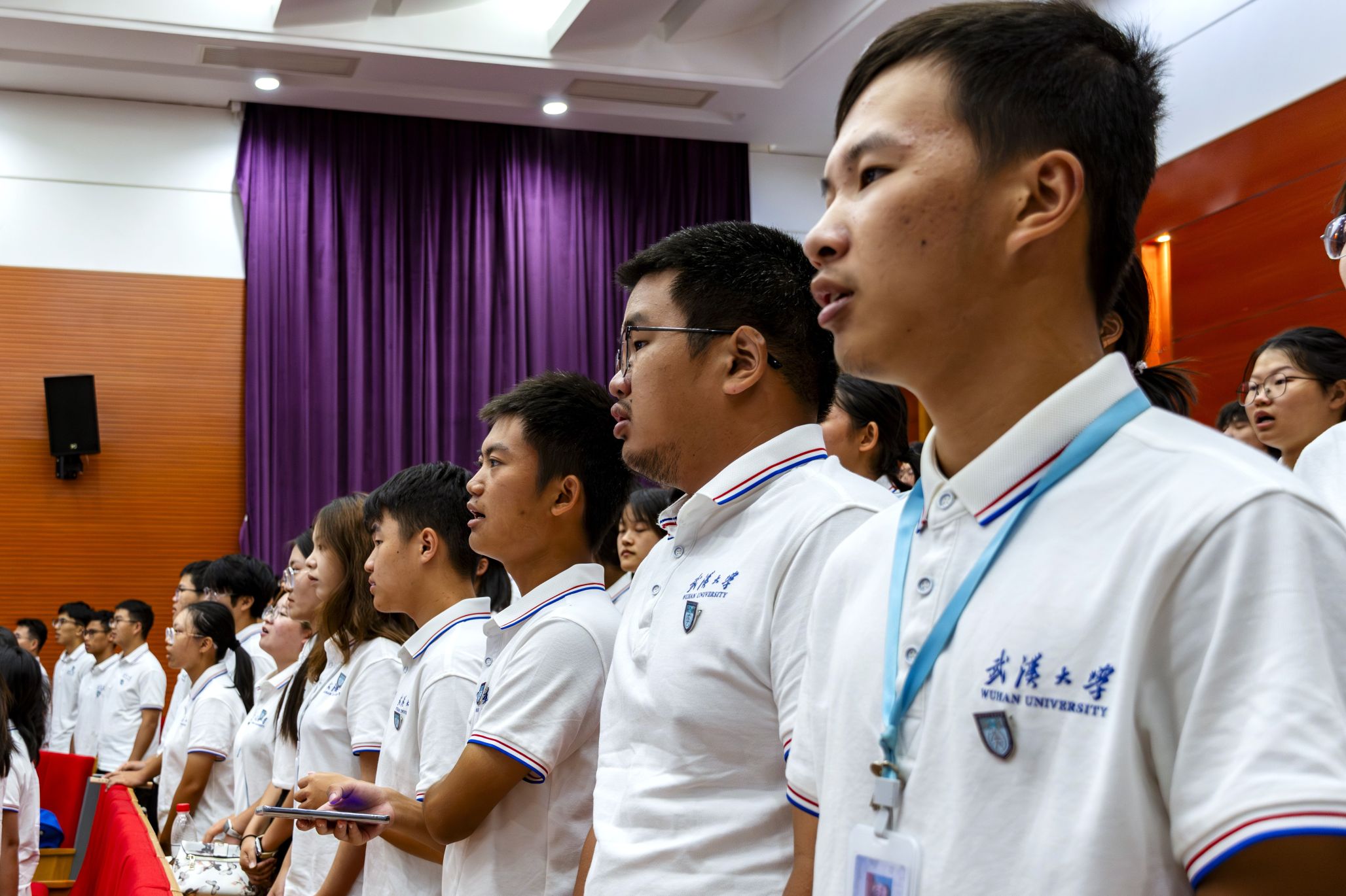 议程最后,全体师生佩戴院徽,合唱《武汉大学校歌》,物理科学与技术学院2024级本科新生见面会圆满落下帷幕。