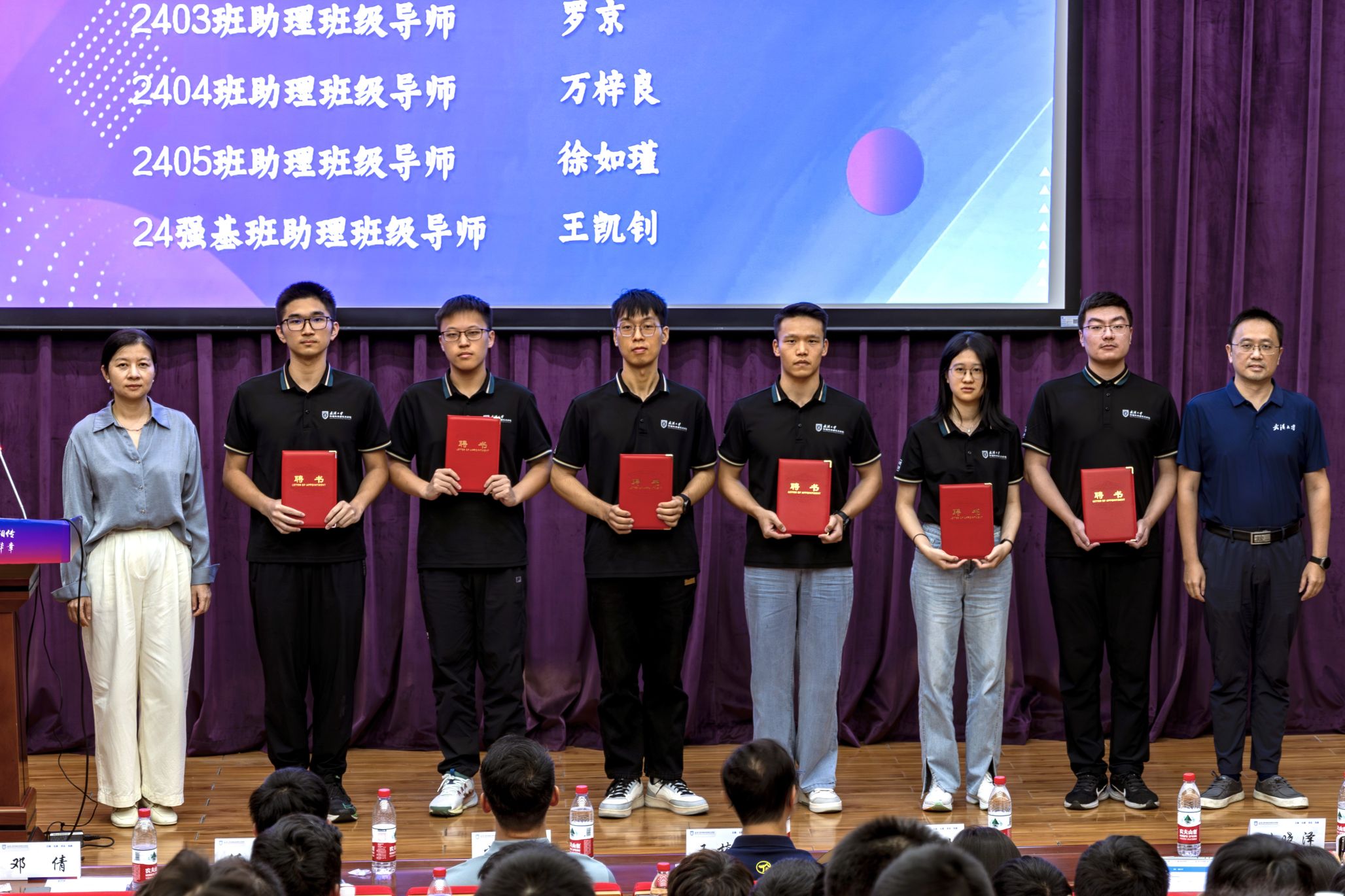 副院长邓倩、常胜为2024级本科生班级助理导师颁发聘书。为进一步优化朋辈引领,学院为2024级本科生每个班级配备一名班级助理导师,由在校优秀学生学姐担任。六位班级助理导师勤奋刻苦、敢于创新,用热情与耐心担当新生引路人,用行动诠释着责任与奉献,携手新生勇敢迈出大学第一步。