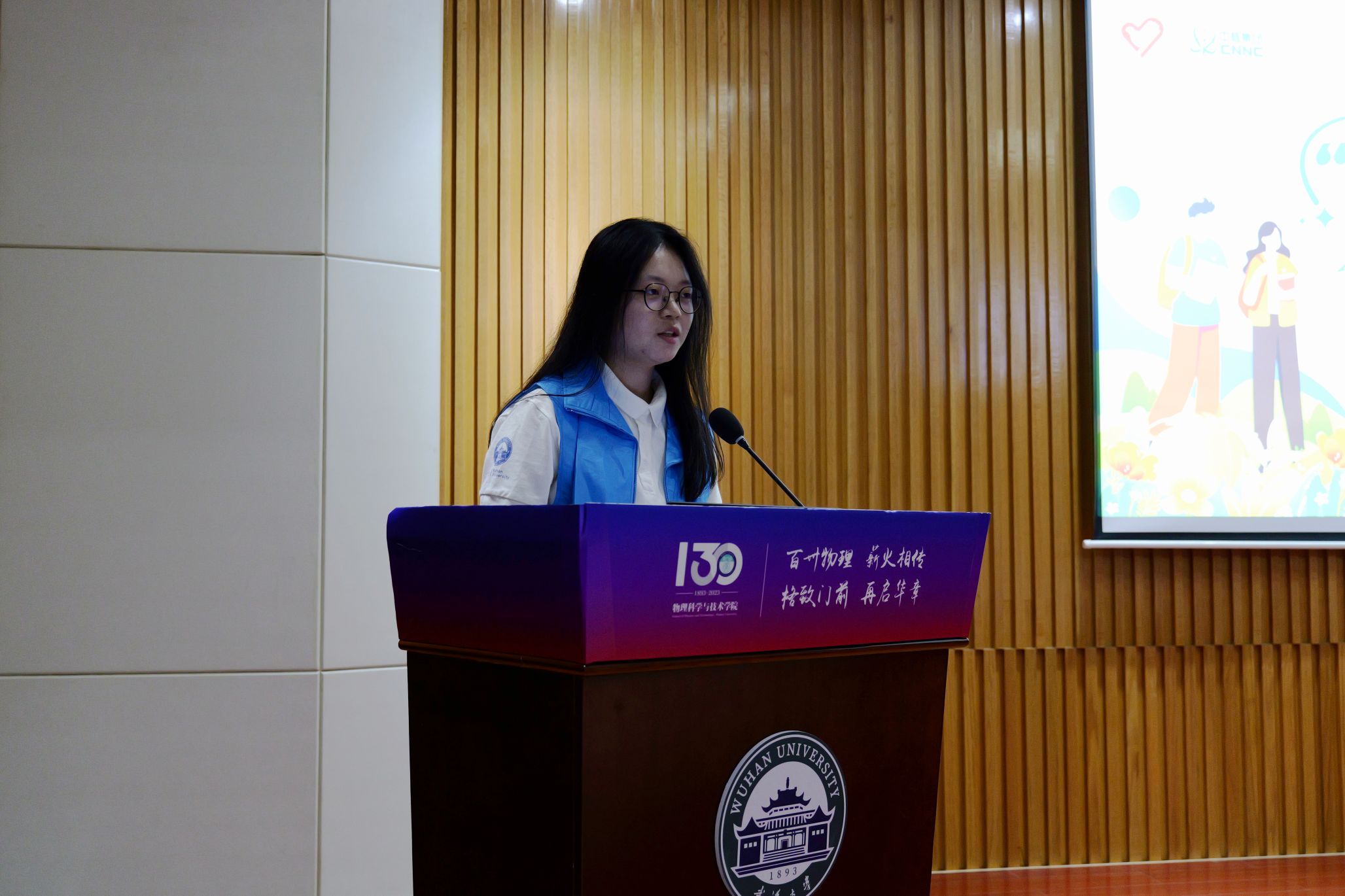 武汉大学青年讲师团成员吴菁进行《两弹一星精神传承》主题宣讲。本次宣讲,吴菁学姐以党领导下的中国核工业发展历程为主线,回顾了中国自1955年来69年间的核工业历史,让学生们了解到中国由“无核”到“有核”,再由“有核”到“强核”的发展历程。吴菁学姐充满激情地介绍了核武功勋郭永怀,讲述了他为回国做出的重大牺牲与在核武研发过程中的艰难困苦。学生们从他的事迹中汲取到学成归国、报效祖国的爱国精神,追求真理、严谨治学的科学精神和淡泊名利、潜心研究的奉献精神。