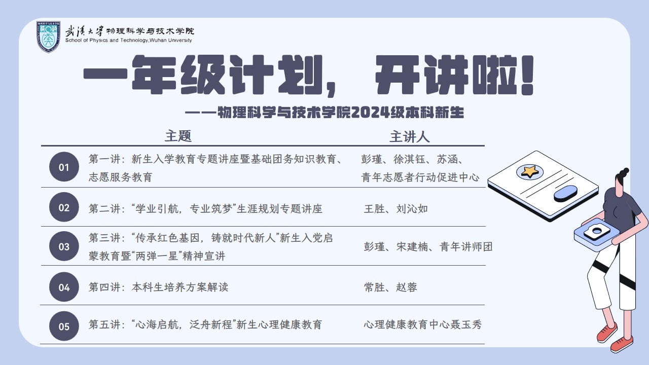 为激发新生主动适应大学生活的积极性,树立健康的心理观念,学会科学调适心理状态,2024年10月10日下午,物理科学与技术学院本科新生心理健康专题讲座在物理学院D503报告厅圆满举行,本次活动邀请武汉大学心理健康教育中心聂玉秀老师作新生入学适应主题报告,聚焦大学生活适应、学习与生活习惯转变、人际关系建立以及恋爱观等多个方面,全面引导新生面对大学生活中可能遇到的各种心理挑战。讲座由2024级新生辅导员彭瑾老师主持,2024级全体本科新生参与活动。