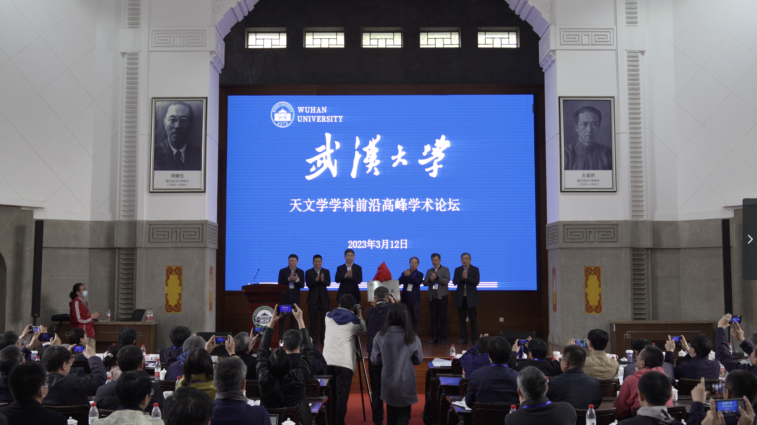 3月12日上午,天文学学科前沿高峰学术论坛在武汉大学成功举办。来自国家自然科学基金委和全国多所高校、研究院所的100余位专家学者齐聚珞珈山,共同见证武汉大学成立天文学系,探讨天文学发展方向。武汉大学党委副书记沈壮海教授出席活动并致辞,活动由开云链接官网(中国)有限公司-官网院长何军教授主持。