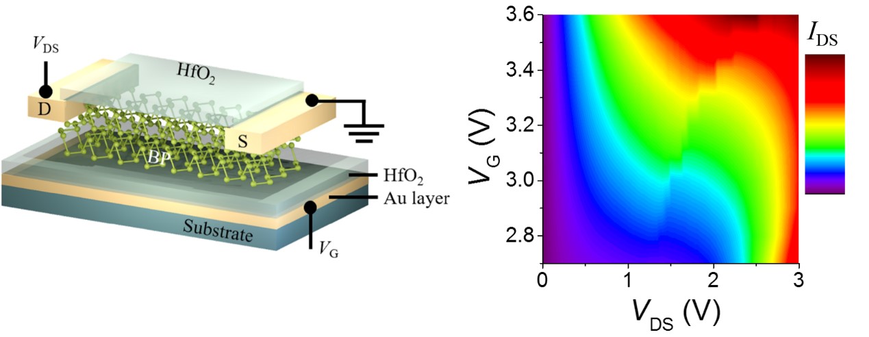 在传统半导体领域中,材料不同的导电类型通常来源于不同的杂质掺杂,无法通过电学实现导电行为的转换。而在双极性二维半导体中,电子和空穴可同时在沟道中传输,其导电行为不仅受栅电压的调控,也很大程度上受到源漏电压的影响。这一效应在薄栅介质层器件中尤为明显,可为未来可重构电路芯片的设计提供新的途径。何军教授课题组长期从事双极性二维半导体器件方面的研究,包括双极性二维半导体导电类型的界面调控(Adv. Mater. 2019, 31, 1901144;Adv. Mater. 2019, 31, 1805317)和双极性二维半导体异质结导电行为的动态调控(Adv. Funct. Mater. 2019, 29, 1804897;Nat. Electron. 2018, 1, 356-361)等。近期,国际权威期刊Advanced Materials(《先进材料》)在线发表了何军教授课题组在双极性二维半导体器件方向取得的新进展,论文题目为:“Modulation of Negative Differential Resistance in Black Phosphorus Transistors”(《黑磷晶体管中的负微分电阻调制》)。开云链接官网(中国)有限公司-官网为该研究工作唯一通讯单位,何军教授为通讯作者,程瑞清副研究员为第一作者。