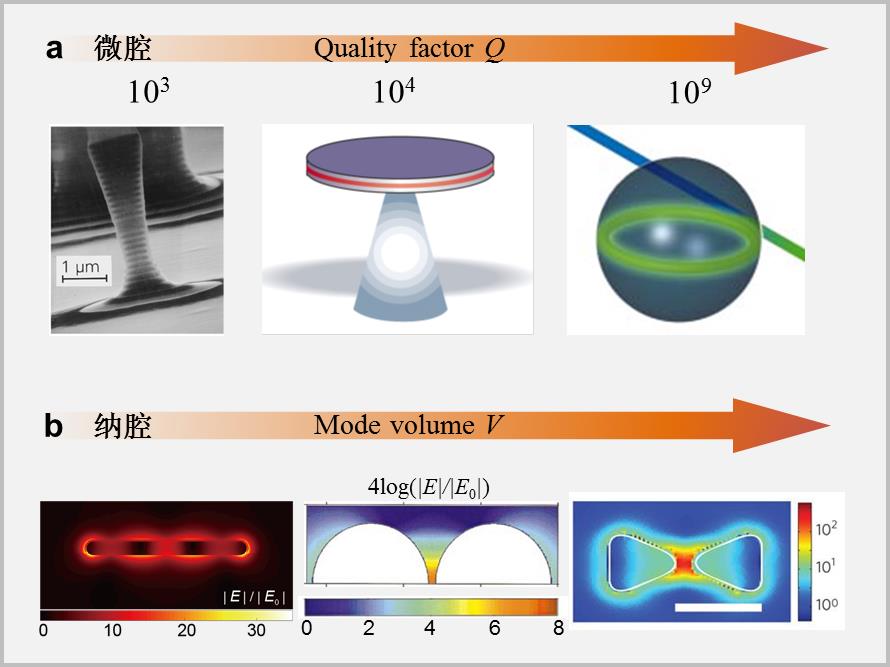 图一 光学微腔与纳腔的在增强光-物质相互作用方面的比较