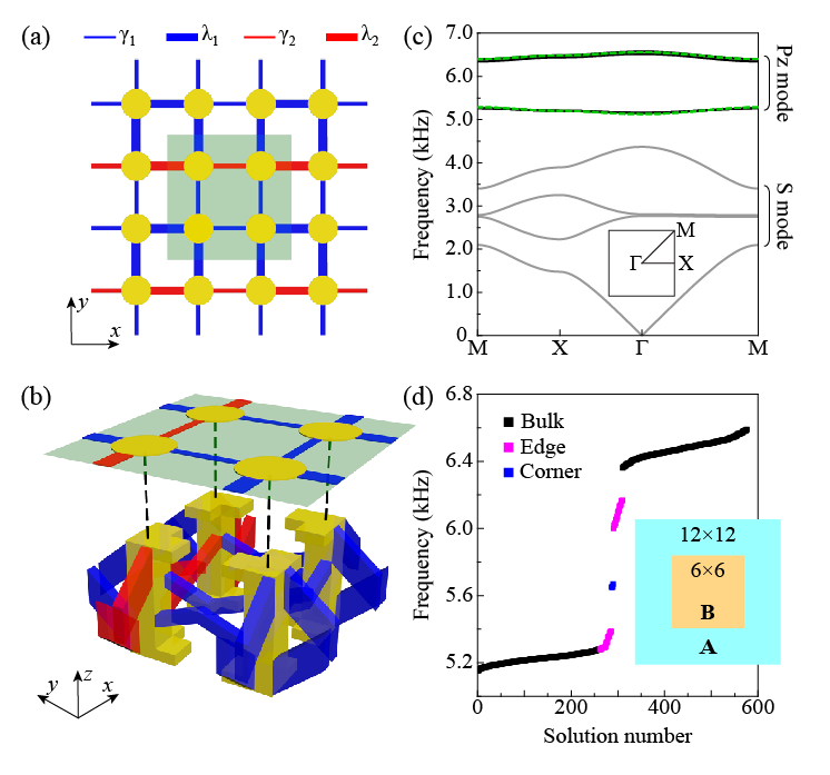 探索新的拓扑物态是近些年凝聚态物理的重点研究方向之一。拓扑物态的核心性质是体-边界对应关系:对于n维的系统,一般具有(n-1)维的非平庸边界态。例如,二维拓扑绝缘体具有拓扑非平庸的一维边界态。近两年,人们发现了一系列突破传统体-边对应关系的新拓扑物态,即高阶拓扑绝缘体。不同于传统的拓扑绝缘体,n维高阶拓扑绝缘体具有(n-d)维拓扑边界态,其中d>1。例如,二维(n=2)的二阶(d=2)拓扑绝缘体具有零维(n-d=0)的拓扑边界态,即表现为局域在样品角上的拓扑态。
