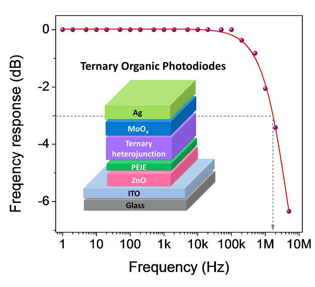 图1 三元有机光电探测器器件结构示意图及其频率响应。