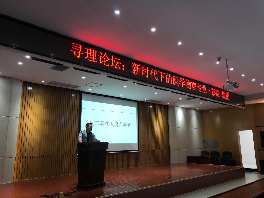 为活跃学术氛围,促进学术交流和创新,激发广大学生关注重大学术理论问题和科学研究热点问题的热情,培养“学以致用”的求学精神,我院研究生会特组织开展“寻理”研究生论坛活动。11月16日晚上19:30我们特地邀请到学院教授彭昊老师,给大家带来“新时代下的医学物理”的讲座。讲座开始会议厅已经接近满员,由此可见整个物理学院研究生对于医学物理专业知识兴趣浓厚。本次讲座由研会学术部成员吴慧娟主持。