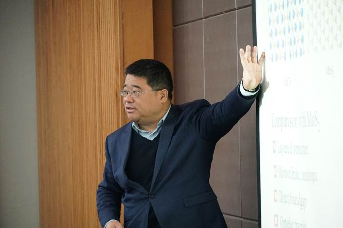 上午的论坛邀请到了华中科技大学二级教授,博士生导师韩宏伟老师,韩老师为大家做了一场精彩的特邀报告 —“印刷介观钙钛矿太阳能电池”。韩教授的讲座非常精彩,引起在座研究生的热烈交流。根据韩教授的讲座可以看出,这种基于全印刷技术及廉价介观对电极的无空穴传输材料型单基板全固态介观太阳能电池适应了光伏市场对低成本光电转换器件的需求,应用前景十分广阔。韩教授报告结束后,大家积极地向韩教授提出了专业的研讨问题,韩教授耐心做出回答。