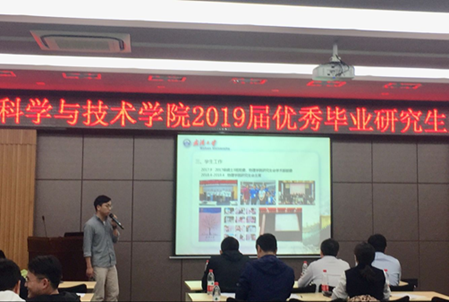 2019届毕业研究生同学积极参加了本次评选活动,经过各毕业年级评选推荐小组审核,共推选出21位表现突出的毕业生同学参加今天的展示。在展示活动中,同学们主要从校园活动、科研、生活、学生工作四个方面展开,用生动的语言和图片依次上台展示了自己研究生生涯来所取得的成果。与同学们分享了个人成长方面所收获的经验与感悟。