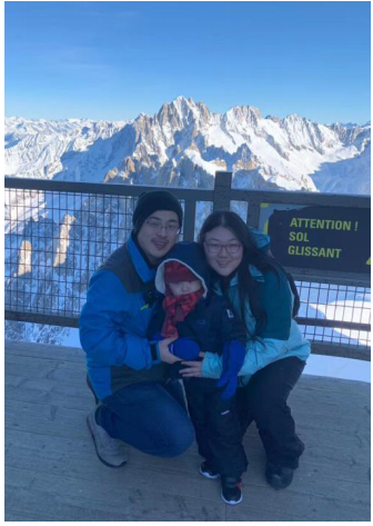曾君、张帅一家三口在阿尔卑斯山脉海拔3000米处的合影