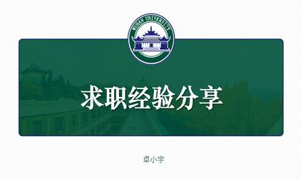 最后一个环节是毕业生党员们给大家带来求职经验分享。支部同志在屏幕前鼓掌欢迎。首先是卓小宇同志,然后是席英男同志,最后是孙晟珂同志。