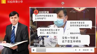 先是第一个环节,抗疫故事分享,尚才杰书记向大家介绍三位人物。分别是李兰娟,张定宇以及张文宏。第一位人物是李兰娟,她是中国工程院院士,中国感染病学家。新冠疫情爆发之后,几度建议“封一座城,护一国安康”,使得中国疫情得到有效控制。同时她主动请缨,进驻武汉,和武汉的医护工作者一起接诊病人。李院士已经73岁了,仍然奋斗在抗疫一线,并率先推出抗病毒药物治疗新冠肺炎,可以说是功不可没。