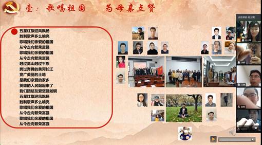 首先支部书记传述了国家新冠肺炎的防控工作。在疫情防控这场没有硝烟的战争中,广大奋斗在一线的医务工作者、解放军指导员、社区工作者、公安民警、基层党员干部、志愿者携手并进,共克时艰,唱响了一曲曲壮美的英雄赞歌。在防控中,全国各条战线、各个领域紧急防控,迅速投入没有硝烟的战争中。一方有难,八方支援。火神山,雷神山医院拔地而起;方舱医院迅速启动,一个月完成的病床数相当于60家三甲医院。来自全国各地和军队的330多支医疗队伍、4.6万多名医务工作者星夜驰援,与湖北和武汉并肩作战。各地纷纷伸出援助之手,19个省份进行对口支援;一笔笔特殊党费、爱心捐款,一笔笔爱心捐赠,为战疫一线投入了必胜的信心和力量。中国在疫情防控中迸发出的中国速度、中国规模、中国效率,为世界树立了典范,彰显了大国的担当,因此让我们大声高唱《歌唱祖国》,为母亲点赞。