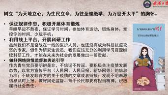 “当我们在家里为晚开学垂头丧气时,为外界的各种消息感到困惑不满时,我们需要做的是在这场全国共同的“战役”面前,去看到那些平凡却不平庸的灵魂”,在这次疫情中,学生党员大多还是居家隔离,曾怡同志从青年党员的义务和责任向我们讲述了如何做一名合格党员,要树立“为天地立心,为生民立命,为往圣继绝学,为万世开太平”的胸怀。