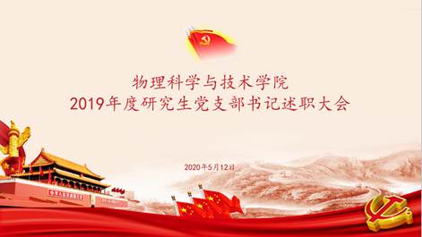 2020512日下午,物理科学与技术学院2019年度研究生党支部书记述职大会通过腾讯会议APP顺利召开。学院党委副书记张一飞、辅导员李顺彦、各研究生党支部委员会成员参与会议。