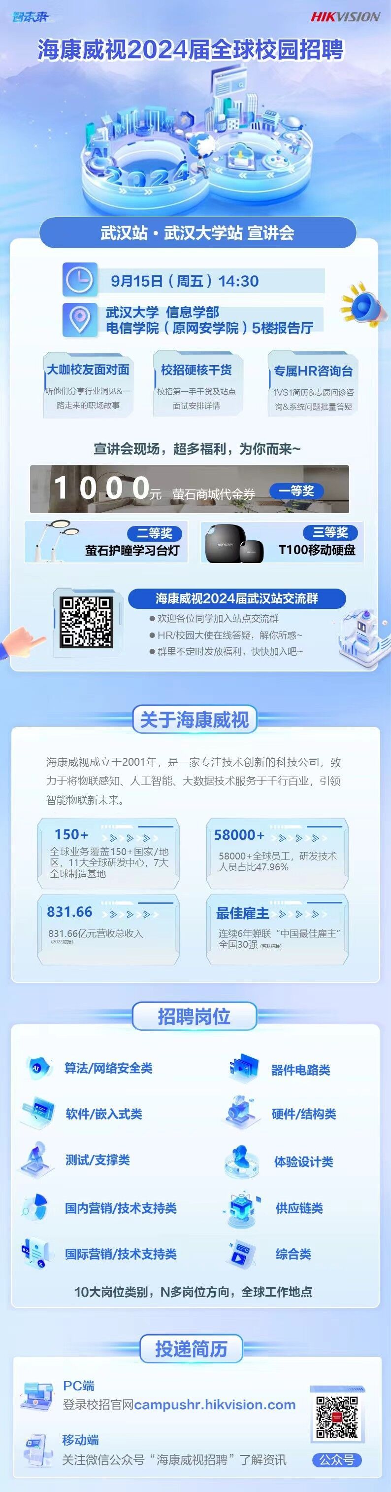 下一条:中国信科 · 武汉光迅科技股份有限公司2024校园招聘武汉大学专场宣讲会