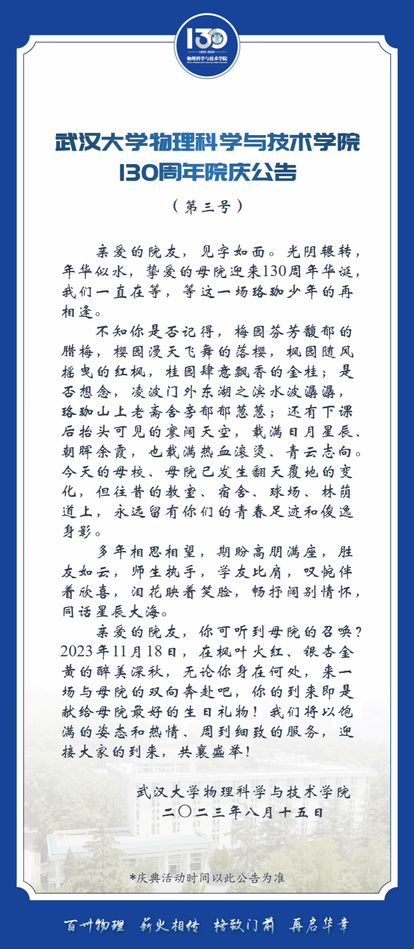 百卅物理,薪火相传 | 开云链接官网(中国)有限公司-官网130周年院庆通知