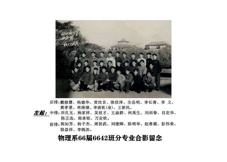 武汉大学物理系1966届6642班分专业合影留念