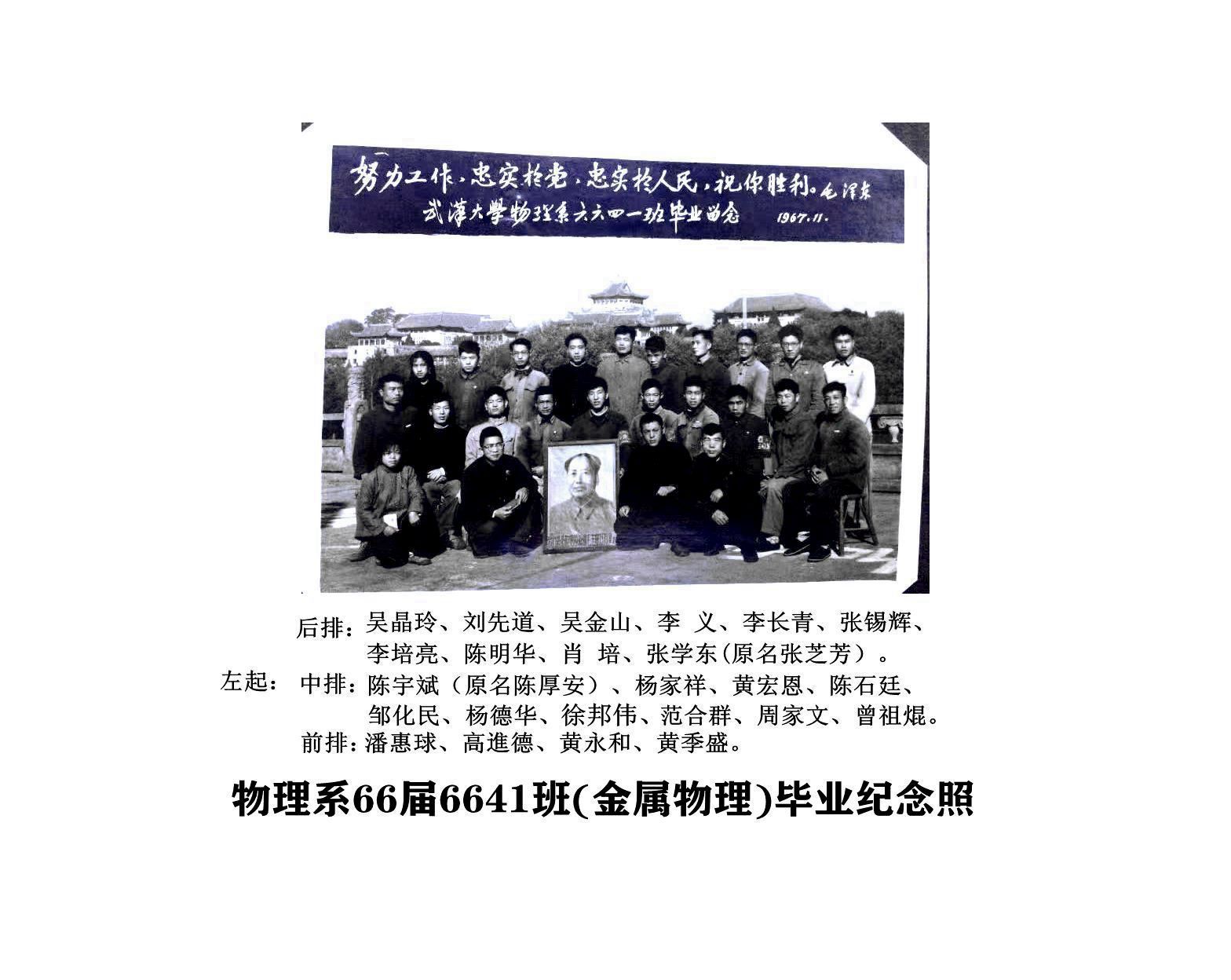 武汉大学物理系1966届6641班(金属物理)毕业合影留念