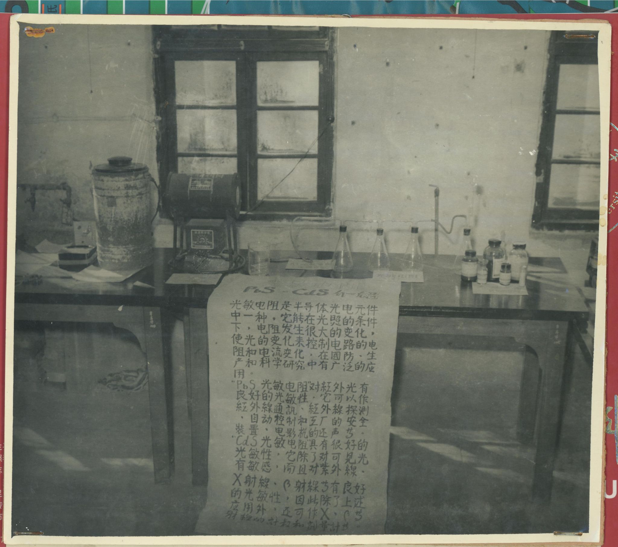 这是58-60年生产PbS光敏电阻的部分土方法上马设备。当时,四个完全没有学过半导体的三年级同学敢于破除迷信,解放思想,就是用这样的设备做出光敏电阻并大量投入生产